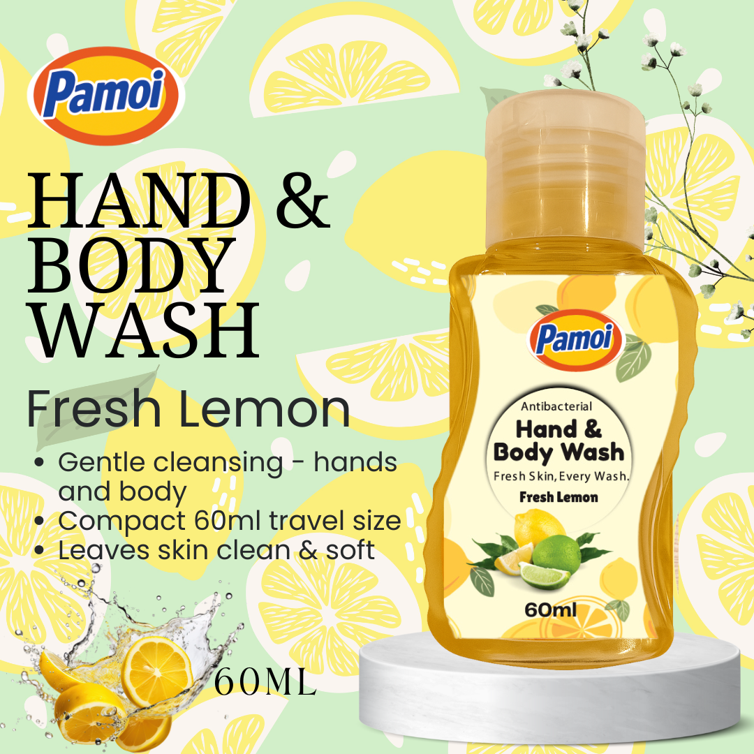 Pamoi Hand & Body Wash β Fresh Lemon delivers energizing freshness and effective cleansing in one small bottle. With a zesty lemon fragrance, it wakes up your senses while gently cleaning your skin. A perfect pick-me-up for your work desk, car, or gym bag.
