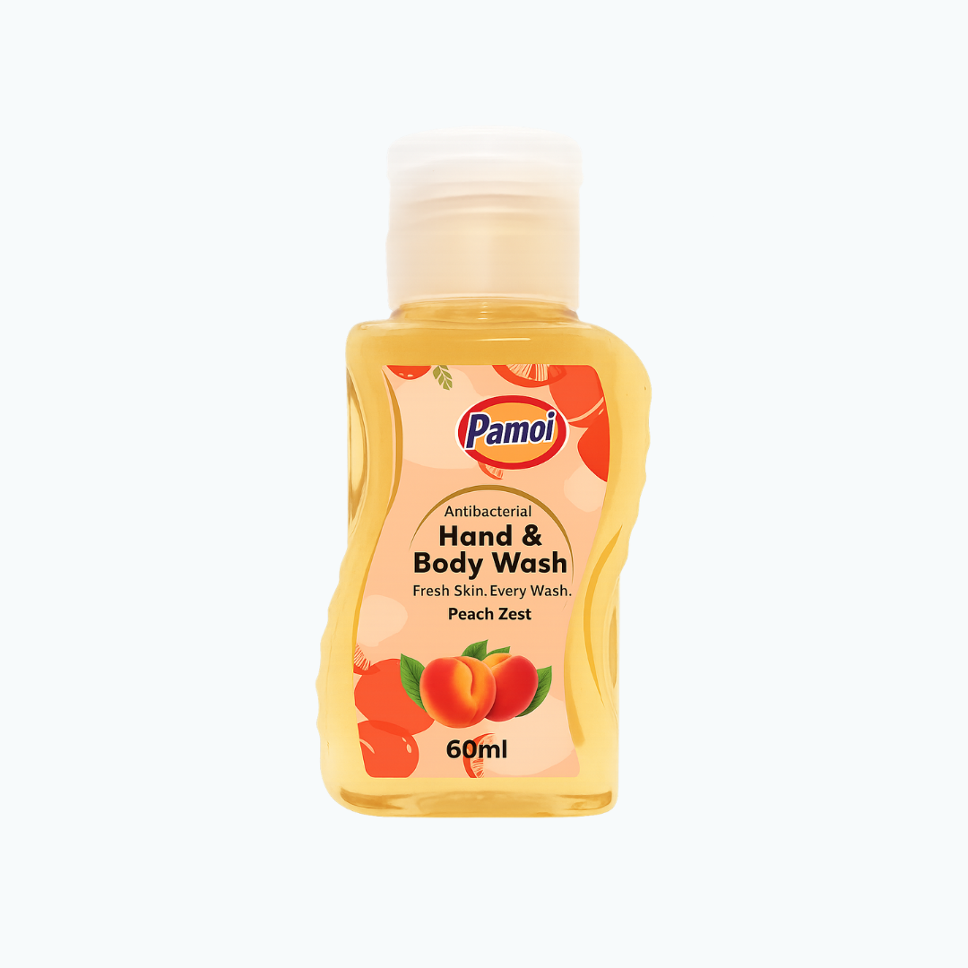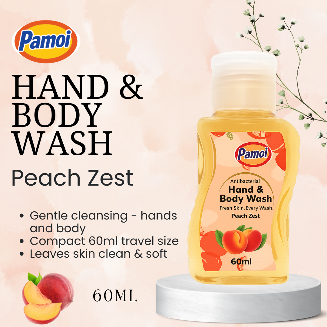 Pamoi Hand & Body Wash β Peach Zest, in a convenient 60ml travel size, keeps you feeling fresh and clean wherever you go. With its juicy peach fragrance and gentle cleansing formula, it softens skin while leaving a light, fruity scent that lifts your mood every time you wash.
